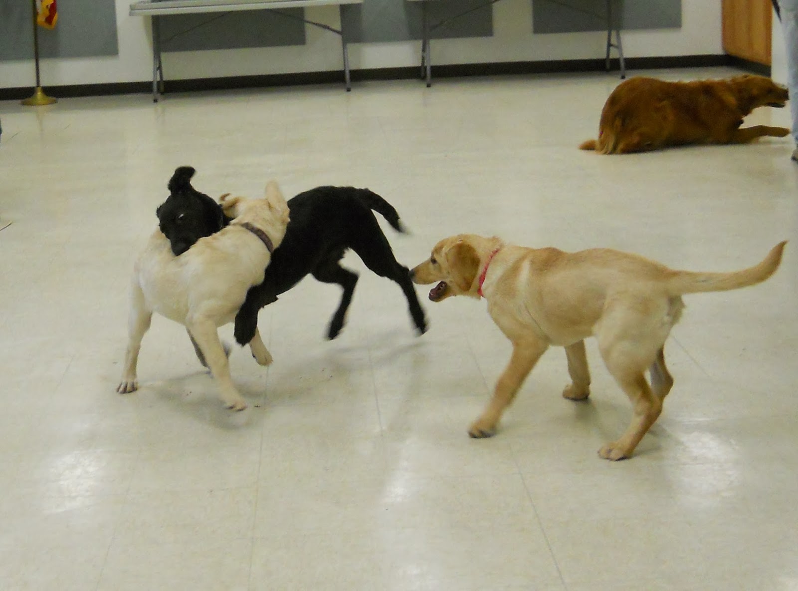 Walking.....Do Not allow your puppy to pull on a walk when you first get him! The only reason a dog pulls is because he has learned that it gets him where he wants. The leash is something all dogs have to learn, and the sooner they learn it the better off everyone is. Start when they are small. If you have a large breed, trust me, in a couple of months they will be bigger than you think. Not that I have anything against having your dog off leash, it's just that they will need to be on leash at some point in their lives, and more likely than not, that will be most of the time they are out in public. You don't have to drag your little friend all over the floor to teach him to walk with you either. Nor will you need to resort to pinch collars to keep your pup from dragging you down the block.